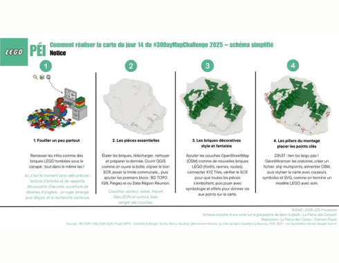 À travers le 30DayMapChallenge, Clément Payet documente également son processus de création cartographique, depuis la collecte des données jusqu’à la mise en forme finale. Cette transparence participe à la dimension pédagogique de La Plaine des Cartes et à la diffusion d’une culture cartographique exigeante.